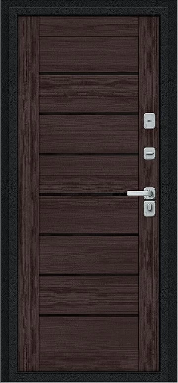 Дизайнерская входная Дверь Браво Thermo Техно Д2/BChrome Букле черное/Wenge Melinga класса Люкс с несколькими листами стали, звукоизоляцией и теплоизоляцией. Утепленный короб и полотно защитят от сквозняков и шумов. Модель не только надежная, комфортная, защищенная и высочайшего качества, но и очень красивая! Будет отлично сочетаться с интерьером дома, квартиры или офиса. Сейчас действует выгодное предложение по цене: 57 209 руб.